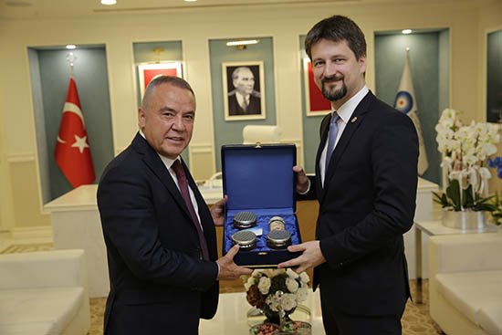 Antalya’da bulunan Macaristan ve Ukrayna Büyükelçileri, Antalya Büyükşehir Belediye Başkanı Muhittin Böcek’i ziyaret ederek, yeni görevinde başarılar diledi.