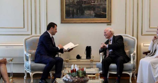“KAN BAĞIM YOK AMA; KENDİMİ O İNSANLARIN TORUNU OLARAK GÖRÜYORUM”“Ben, bu ülkenin bir evladı olarak, bu ülkenin geçmişinde her kim varsa, kendimi aslında onların bir torunu olarak görüyorum” diyen İmamoğlu, şunları söyledi: “Bugün itibariyle ve bugünden sonra -elbette sizler gibi kan bağım yok ama- bu ülkenin bir ferdi olarak, geçmişinde kim varsa, o insanların da bir torunu olarak görerek, aslında atasına sahip çıkan bir insan olduğumu belirtmek isterim. Bu duyguyla sizleri bugün ağırlıyorum.Size bakarken de sizleri şanslı bir ailenin evlatları olarak görüyorum, güzel bir tarihe sahip olmamıza vesile olan bir aileye sahip olduğunuzu görüyorum ve sizleri bu şekilde karşılıyorum. O bakımdan bu yönüyle, çokça tarihi okumaya, anlamaya, irdelemeye çalışan hatta tarihin tüm detaylarıyla toplumumuza yansıtılması için de hizmet etmeye çalışan bir Belediye Başkanı olarak, belki de bu felsefeyle bizler ne yapabiliriz ya da nasıl bir felsefe ve ilişki oluşturabiliriz noktasında da her türlü fikrinize, iletişiminize açık olduğumu bilmenizi de çok arzu ederim. Fatih Sultan Mehmet’in tablosunun ülkemize kazandırılmasıyla beraber organize ettiğimiz buluşmaya denk gelmesini de çok önemli bir an olarak düşünüyorum. Çok hoş bir buluşma oldu. Ayağınıza sağlık diyeyim.”