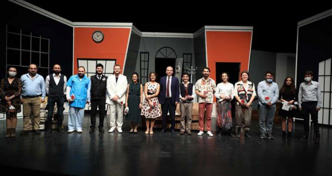 “Tiyatro hep yaşasın” diyen Başkan Zolan, “Bu güzel salonlarımızda başarılı sanatçılarımız siz değerli sanatseverlere birçok güzel oyun sergileniyor. 2020-2021 sezonunun açılışını bugün yaptık. Şartlar ne kadar zor olursa olsun, sanatsız kalmamak gerekiyor. Sanatsız bir toplum yaşayamaz. Bu noktada fedakarlık gösteren sanat yönetmenlerimize, tüm oyuncularımıza çok teşekkür ediyorum”dedi. Tiyatro ve sanatın güzeliklerinin artarak sürmesini dileyen Başkan Zolan, “Bu sezon çok güzel sürprizler ve oyunlarımız var. Sizleri her zaman bekliyoruz. Emek veren herkese çok teşekkür ediyorum. Yarınımız bugünden daha güzel olsun, sağlıklı ve sanatlı olsun” diye konuştu.