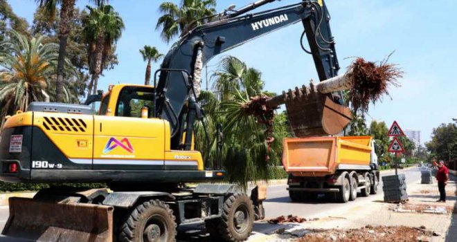 Palmiye ağaçları yeni yerlerine dikiliyor