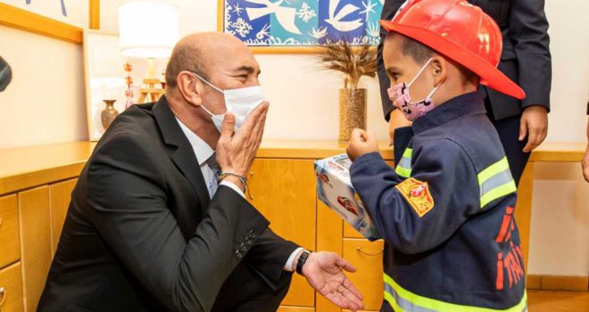 İzmir Büyükşehir Belediye Başkanı Tunç Soyer, 25 Eylül- 1 Ekim tarihleri arasında kutlanan İtfaiyecilik Haftası nedeniyle İzmir İtfaiye Dairesi Başkanı Murat Varlıorpak ile itfaiyecileri ağırladı. Ziyarette İzmir Büyükşehir Belediyesi Genel Sekreteri Dr. Buğra Gökçe ve İzmir Büyükşehir Belediyesi Genel Sekreter Yardımcısı Yıldız Devran da yer aldı. Başkan Soyer, itfaiye erlerinden Berivan ve Olcay Arslan’ın 3 yaşındaki oğulları Devrim Cem ile yine itfaiye eri Mustafa Yatım’ın kızı 2 yaşındaki Güneş’le yakından ilgilendi.