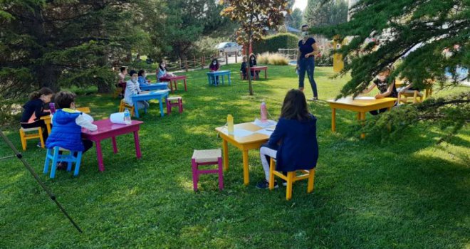 Her şey çocuklar için sloganıyla hizmet veren ancak pandemi nedeniyle Mart ayından beri ziyarete kapalı olan Masal Şatosu, online atölyelerin yanı sıra pandemi koşullarına uygun sınırlı sayıda katılımcı ile açık hava etkinliklerine de devam ediyor.