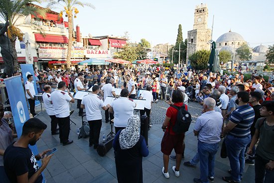 Antalya Büyükşehir Belediyesi Kültür ve Sosyal İşler Dairesi Başkanlığı tarafından düzenlenen “Şehirde Müzik Var” etkinlikleri Antalya’nın farklı noktalarında gerçekleştirilen konserler ile devam ediyor. Büyükşehir Belediyesi Bando Orkestrası, etkinlik kapsamında vatandaşların ve turistin yoğunlukta olduğu Kalekapısı’ndaki Attolos Heykeli önünde muhteşem bir konser verdi.