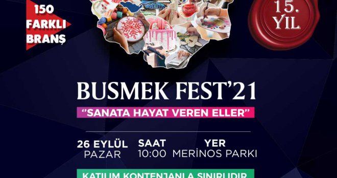 Bursa Büyükşehir Belediyesi Sanat ve Meslek Eğitim Kursları (BUSMEK), 15. yılını “Sanata Hayat Veren Eller” temasıyla hazırladığı Türkiye’nin en büyük atölye çalışması etkinliği BUSMEK FEST’21 Festivali ile kutlayacak.